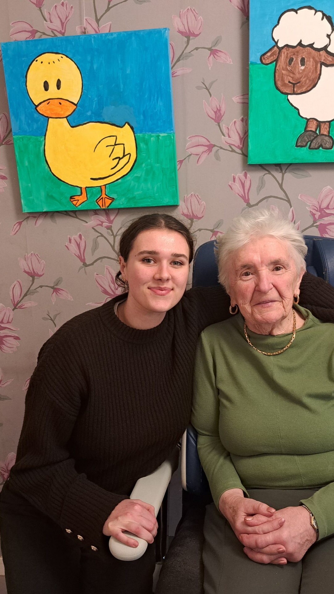 Ze zijn hier allemaal vriendelijk en dat betekent veel voor mij! Ik ben blij met mijn nieuwe vriendin Evelyne hier in het rusthuis.